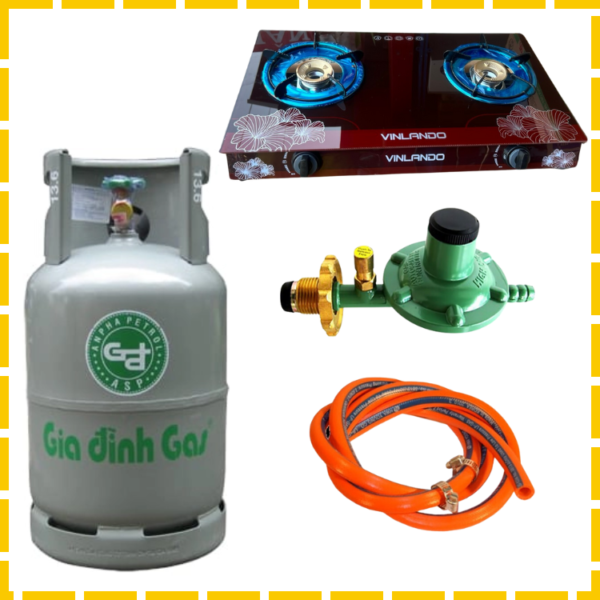 Combo Trọn Bộ Bình Bếp Gas Đôi Van Dây Khóa Gas Tự Động